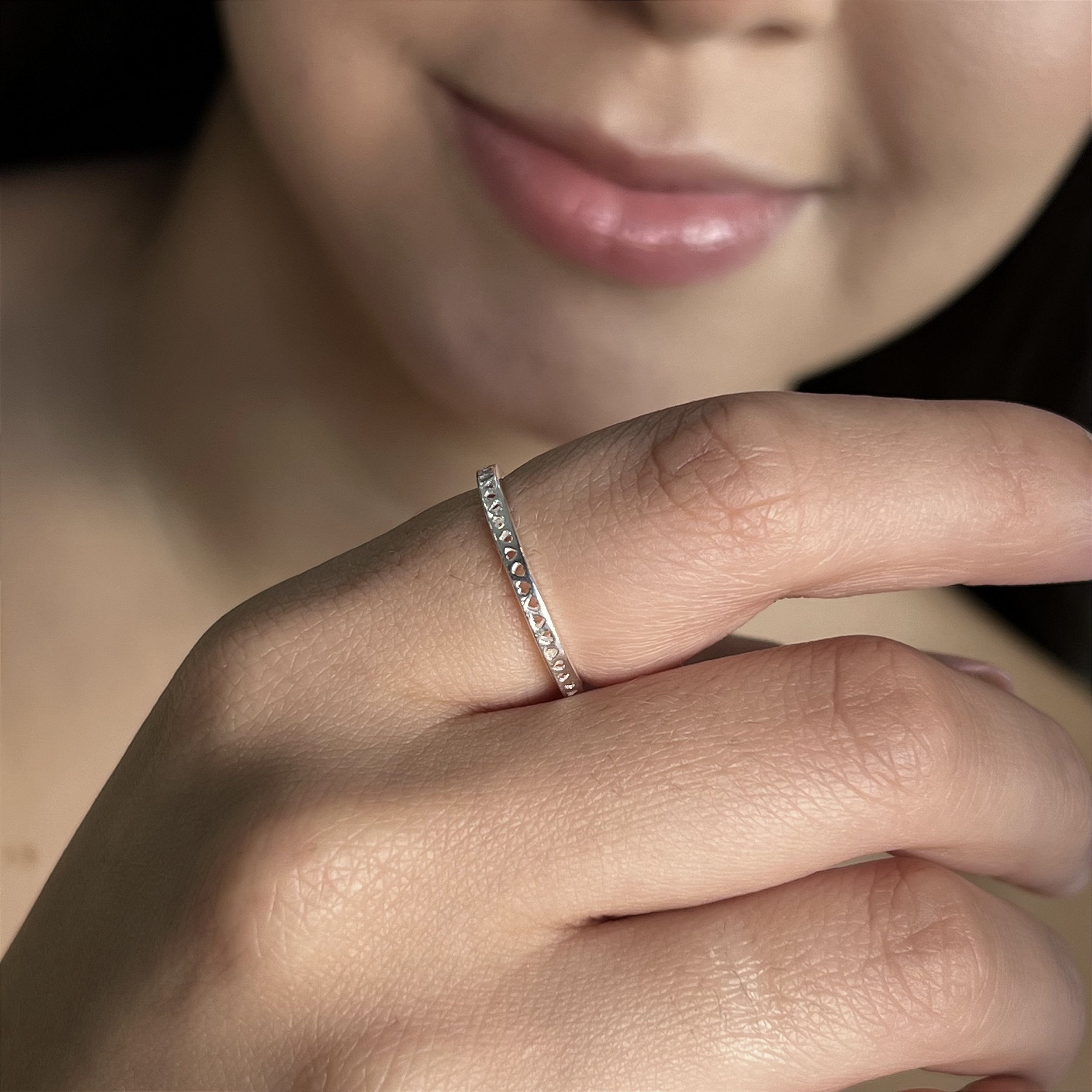 Anel Detalhe Corações Prata 925 - APR308