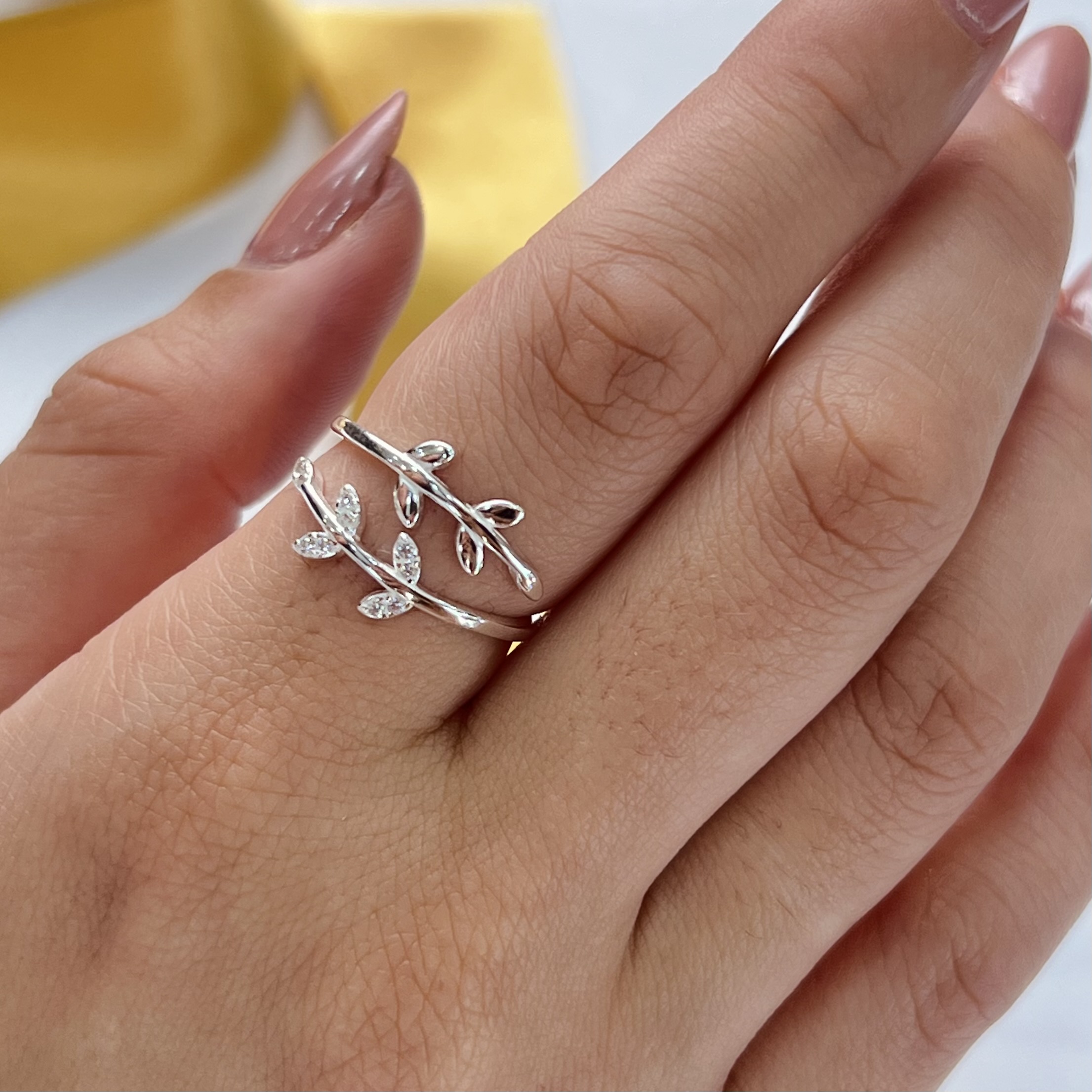 Anel Folhas Cravejadas Prata 925 - APR289