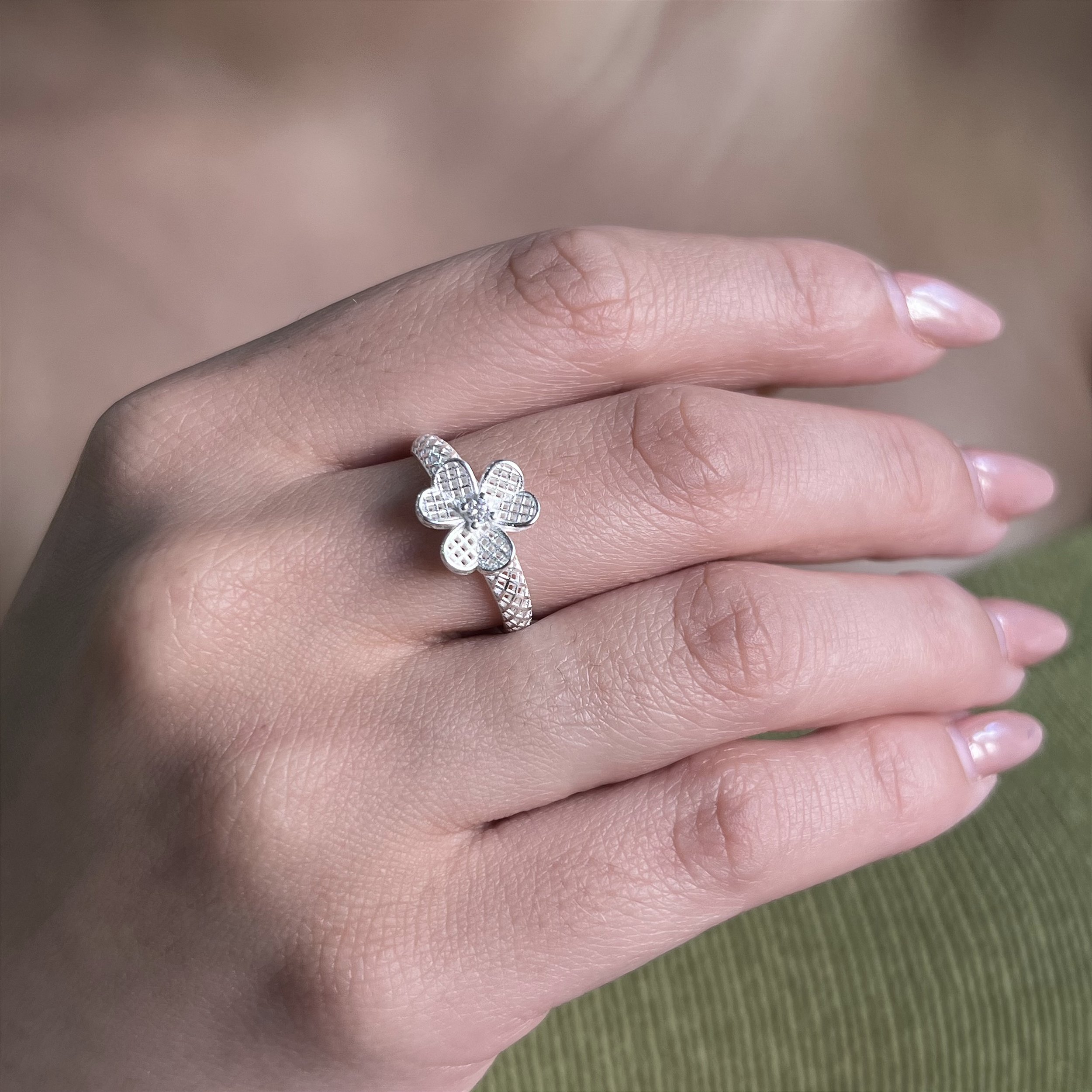 Anel Trabalhado com Flor Prata 925 - APR305