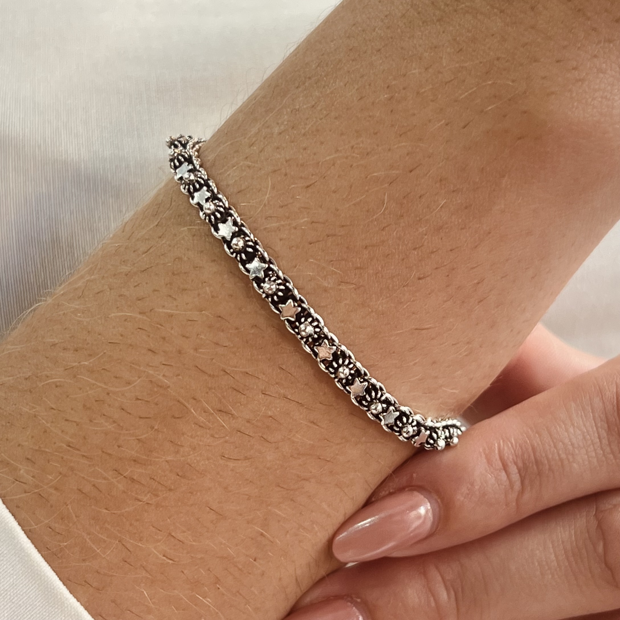 Pulseira de Bali Pikun com Flor e Estrelas Prata 925 - PPR539
